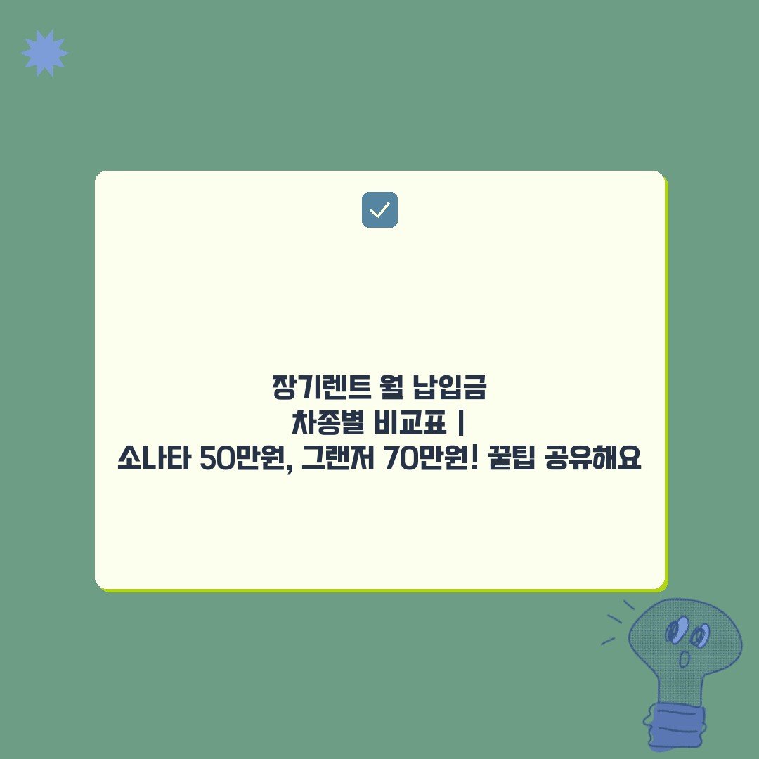 ## 메타 설명 소나타 월 50만원, 그랜저 월 70만원! 장기렌트 월 납입금 차종별 비교표로 최적의 차량을 찾아보세요. 합리적인 렌트카 견적과 꿀팁까지 모두 알려드립니다!